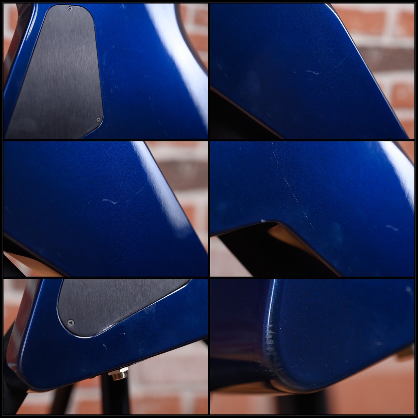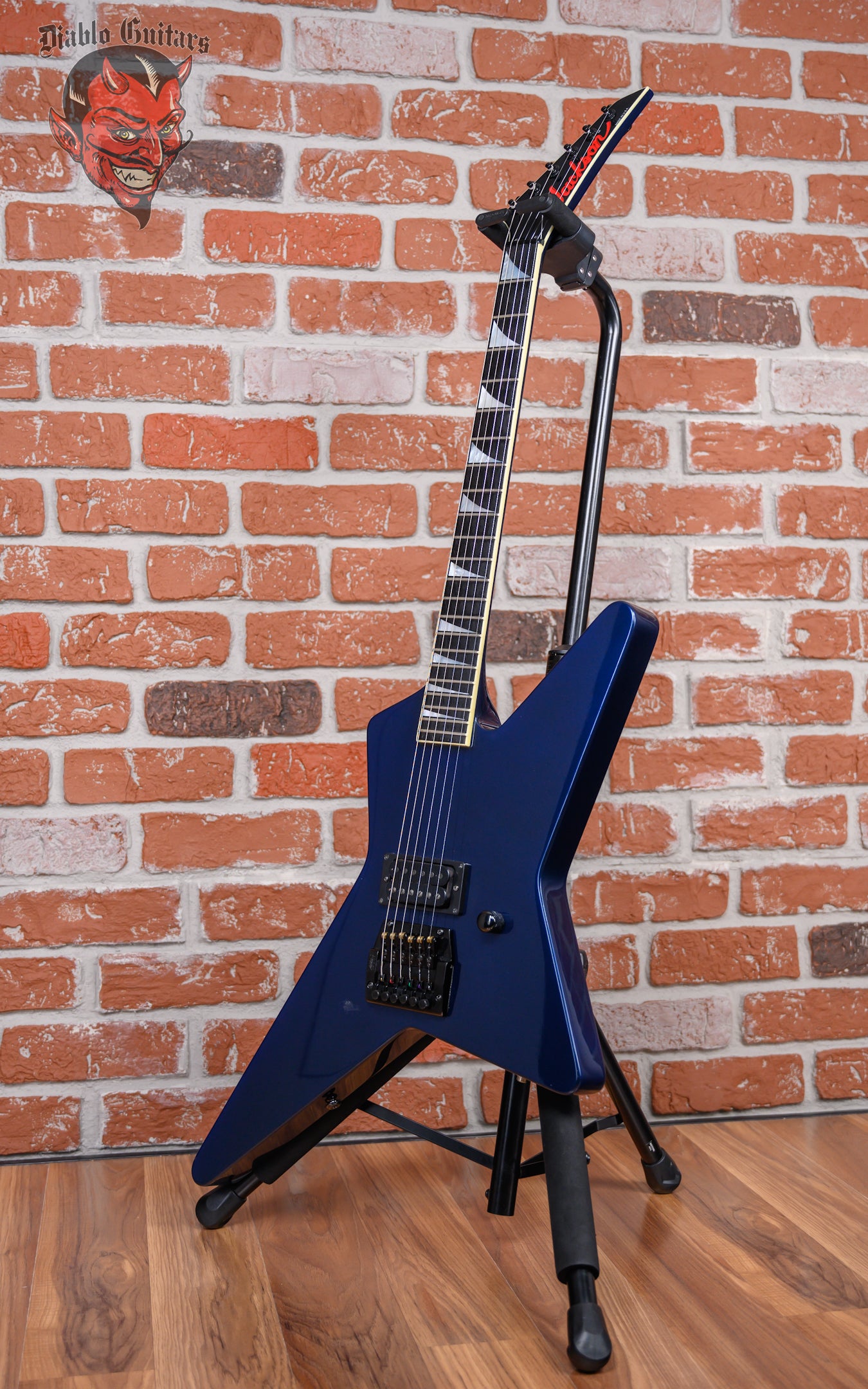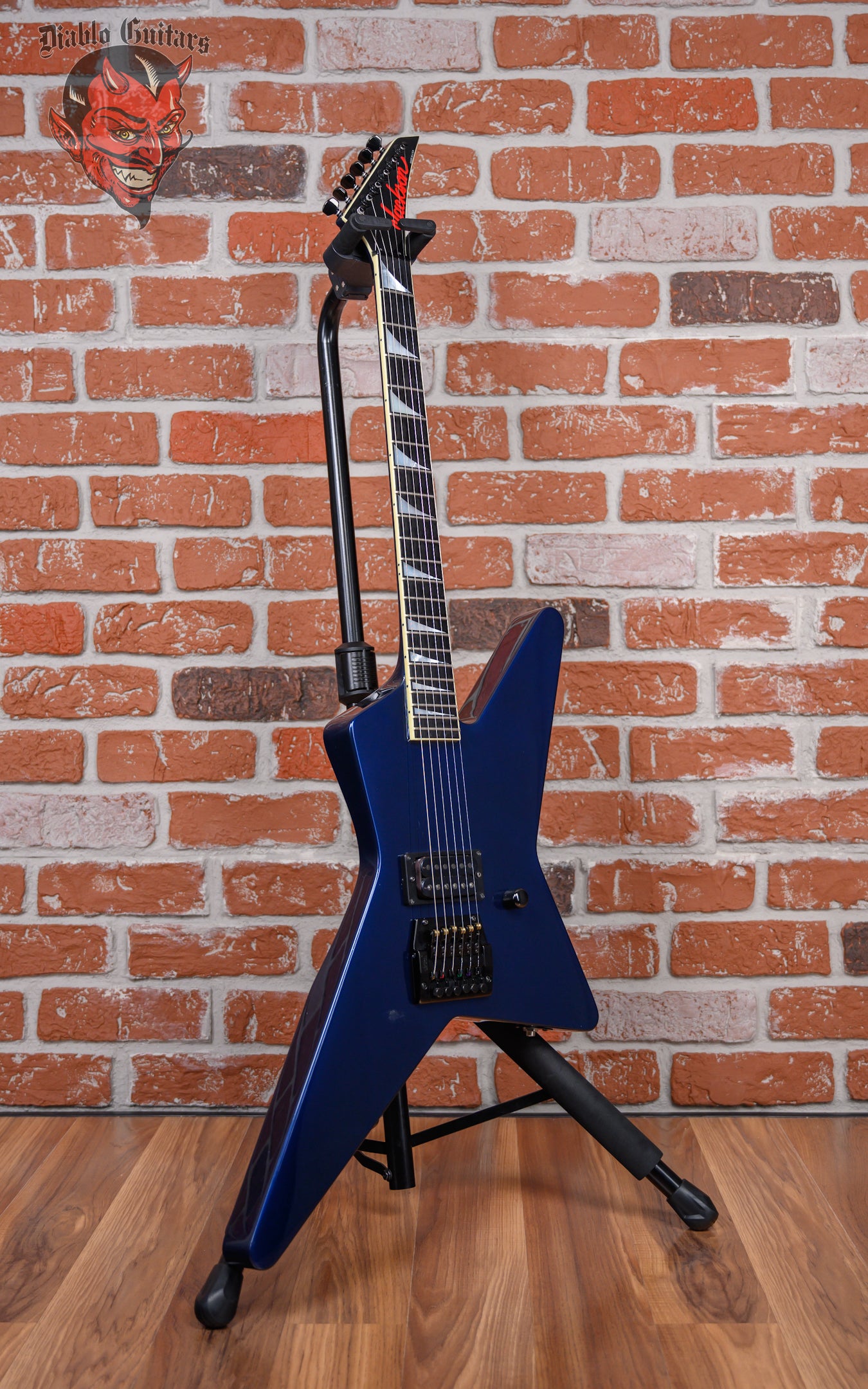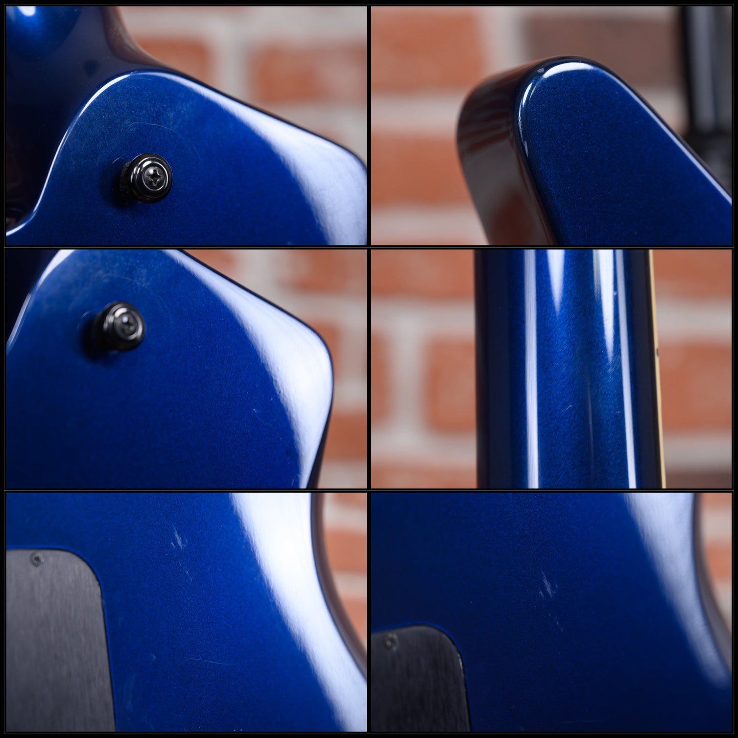 Vintage Jackson USA Custom Shop San Dimas Star in Cobalt Blue finish made in 1986 with Original Hard Shell Case. This guitar features a solid poplar body, quartersawn maple neck-thru and bound ebony fingerboard with a bound headstock with red logo. Equipped with a single Jackson J50B humbucker in the bridge position and controlled by one master volume pot. The 25.5" scale length neck has mother of pearl sharkfin inlays and black side markers with 22 jumbo frets on a compound 12"-16" radius with a speed profile. The hardware is comprised of black Jackson sealed diecast tuning machines with cloche heads, a graphite nut, a kahler 3310 hardtail bridge and black knurled dome knob.