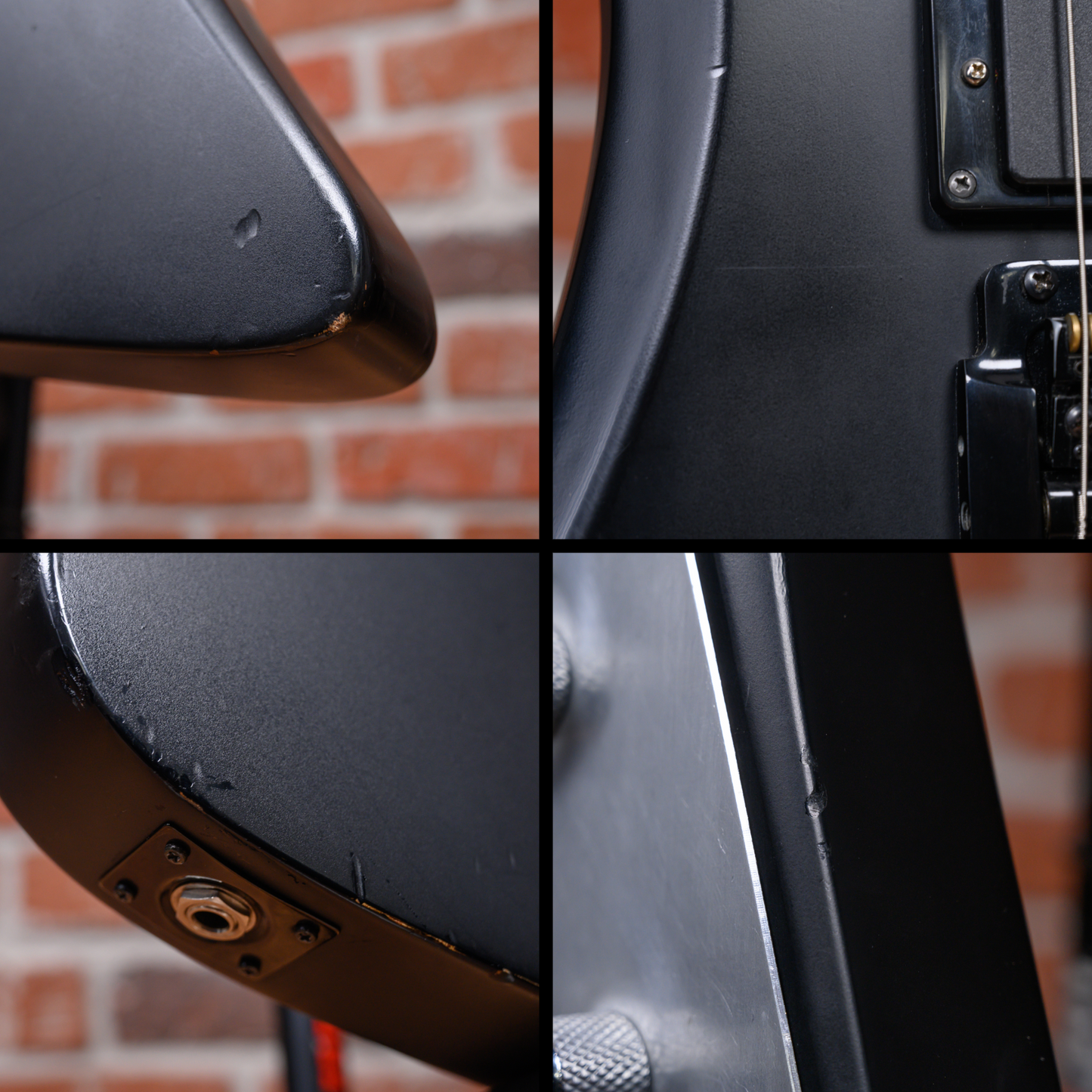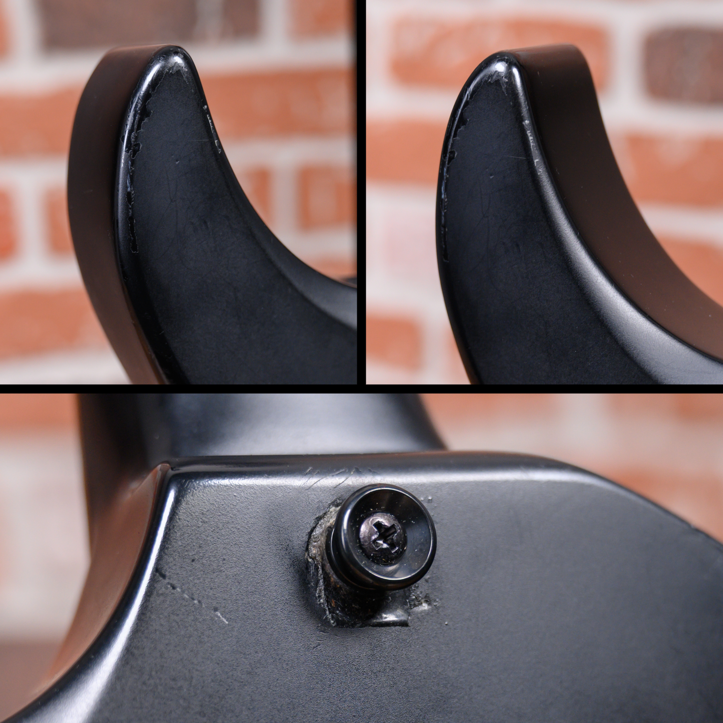This guitar is in overall good condition. The headstock has light surface marks and small dings around the edges. The finish on the back of the neck is worn and is almost glossy. The back strap button has had a repair at some point in its life. There are surface marks and light dings throughout the back of the body. The front has surface marks and small dings. The space between the pickups has picking marks and a small glossy area. The pickguard shows picking marks and other light marks. There are some marks on the fretboard around the 11th and 13th frets. (See Pics)