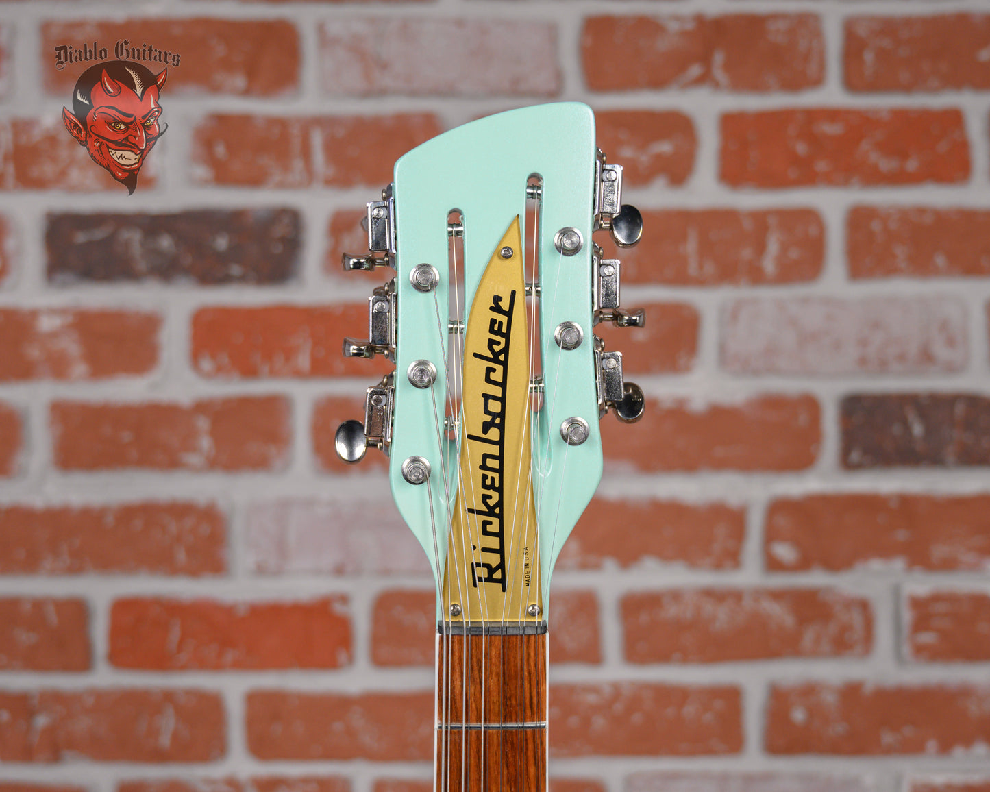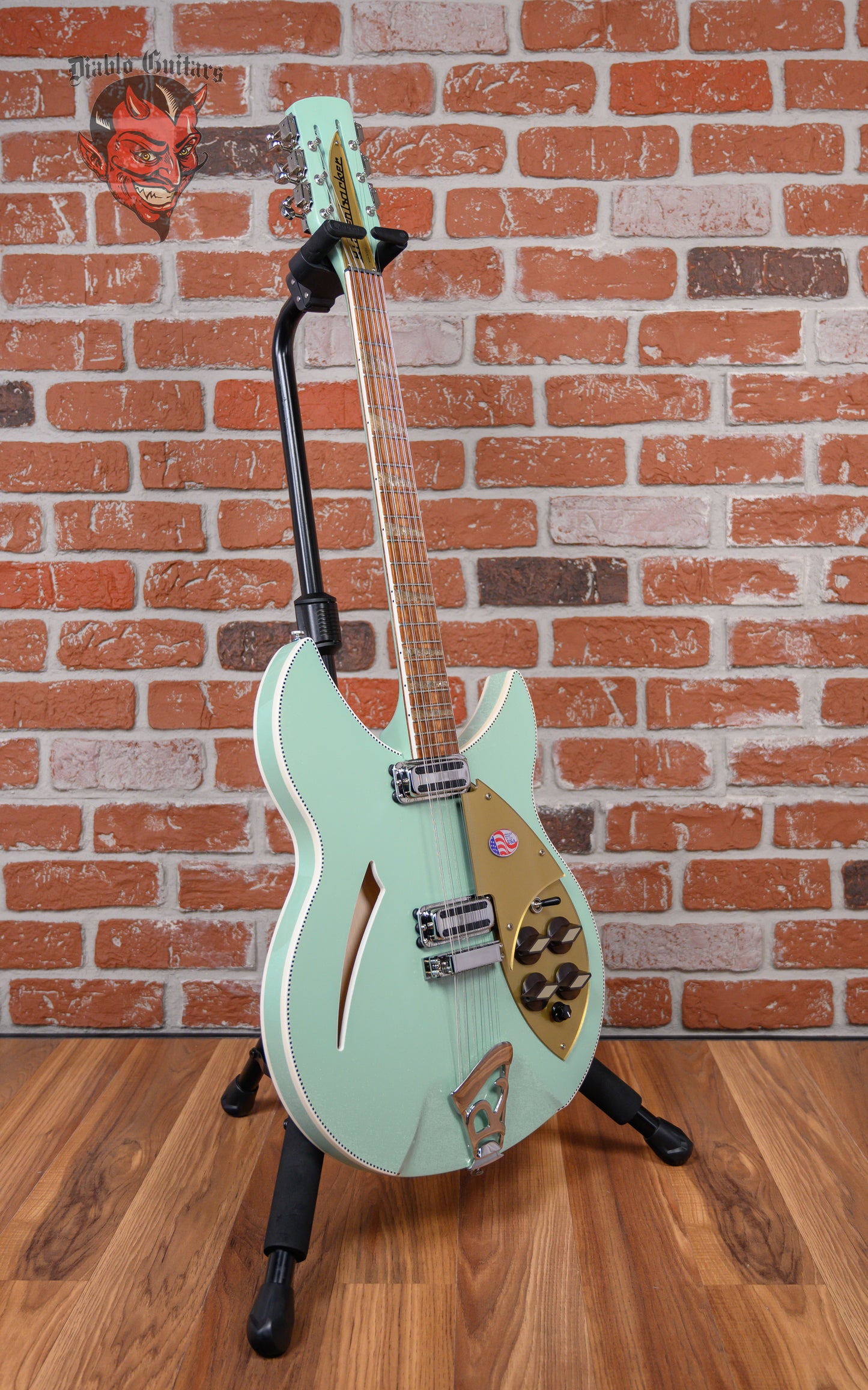 Rickenbacker Model 360/12 in Seafoam Green Pearl finish made in 2025 with Original Hard Shell Case. This guitar features a double bound semi-hollow maple back & sides body with a maple top, 3-piece maple/walnut neck and bound rosewood fingerboard. Equipped with a set of Rickenbacker Vintage Toaster Top Single-coils in the neck and bridge positions. Controlled by 2 volume pots, 2 tone pots, 1 pickup blend pot and a 3-way toggle switch. The 24.75" scale length neck has crushed pearl triangle inlays and black side markers with 22 vintage-spec frets on a 10" radius with a slim D profile. The hardware is comprised of chrome Rickenbacker Ric Deluxe tuning machines with oval heads, a Bakelite nut, a Rickenbacker 6 Saddle bridge w/ R tailpiece and vintage-style oven knobs with a 2-piece gold plexi pickguard.